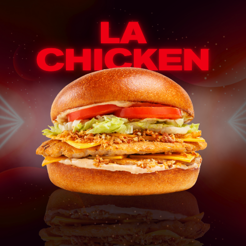 Double chicken smash burger, cheddar cheese, lettuce, tomato slice, crispy onion, and homemade QUEEN sauce.
